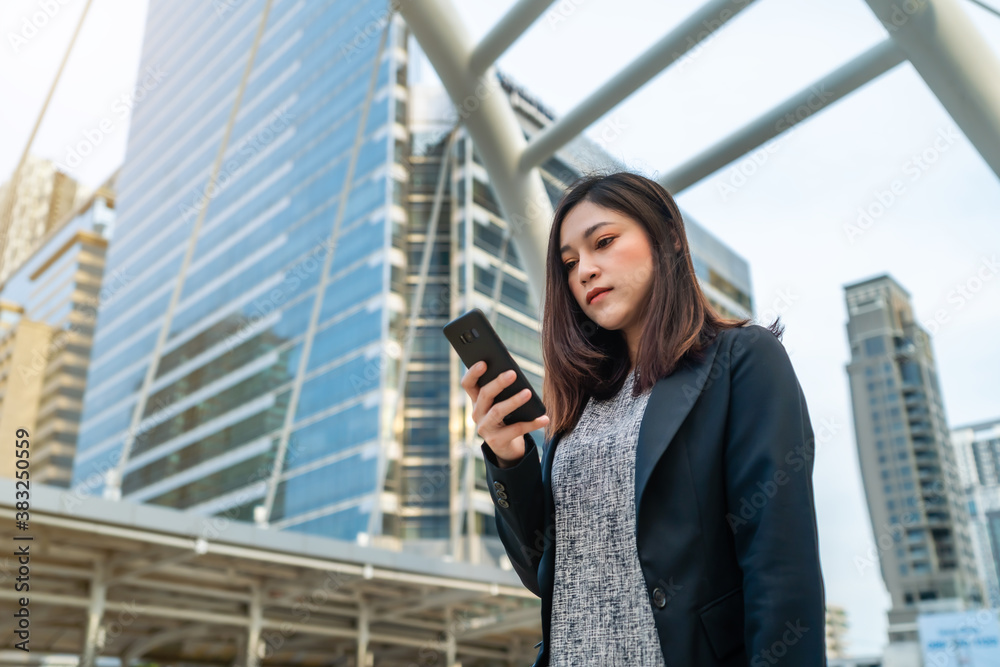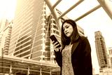 business woman using smartphone in city