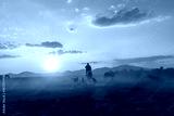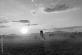 Wild horses run in foggy at sunset. Between Cappadocia and Kayseri, Turkey