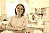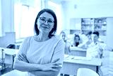 Portrait of middle-aged woman teacher in classroom