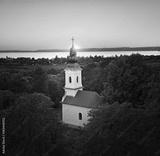 Small chapel in the sunset in Szantodpuszta, Hungary