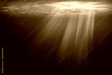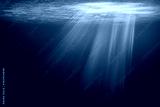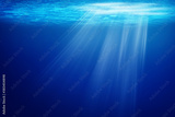 Abstract image of Tropical underwater dark blue deep ocean wide nature background with rays of sunlight.