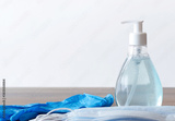 Coronavirus corona virus prevention travel masks and hand sanitizer gel for hand hygiene spread protection.