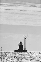Silhouette of a beacon at sunset, selective focus, color toning applied.