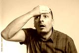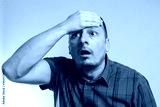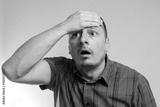 man screams holding hand on his head, emotions, logo.
