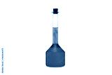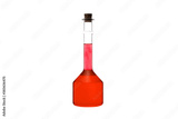 Corked bottle of mysterious liquid. Vintage glass bottle containing red liquid isolated on white background. Magic spell and potion, apothecary elixir or deadly poison conceptual idea.
