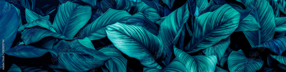 closeup tropical green leaf background. Flat lay, fresh wallpaper banner concept