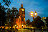 Evening view of the old Water tower, now museum in Historical center of Vinnytsia, Ukraine. September 2020