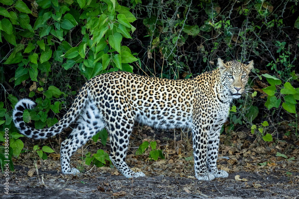 Horizontal portrait of an adult leopard in Chobe River in Botswana