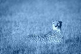 Adult cheetah lying in tall grass in Masai Mara in Kenya