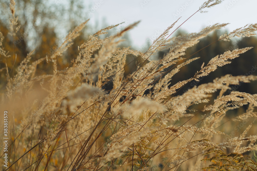 Bright ears of grass withered in autumn. Nature turns yellow, fades with the onset of cold.