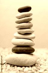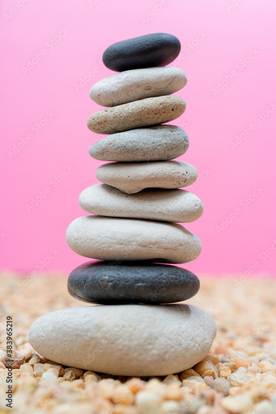 Stack of pebbles in an unstable state. A pyramid made of flat stones.