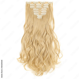 multiple pieces clip in wavy blonde synthetic hair extensions