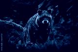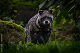 Civet, Civettictis Civetta, in the desert, Okavango delta, Botswana, Africa. Beautiful animal, hunting in the night. African civet, wildlife scene from nature. Civet in nature green habitat.