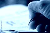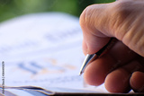 close up of a person writing on a notebook