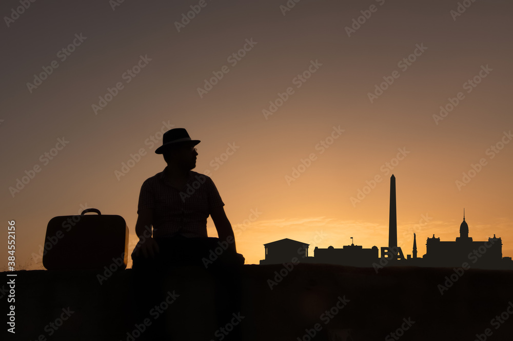 man next to Buenos Aires city skyline silhouette