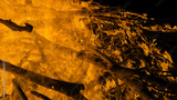 CLOSE UP: Blazing bonfire burns through firewood stacked neatly in the fireplace