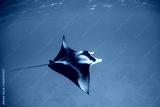 Beautiful and graceful Manta ray swimming in clear blue water at the surface