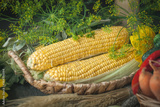 The table, decorated with vegetables and fruits. Harvest Festival,Happy Thanksgiving. Autumn background. Selective focus.