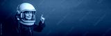 A small child imagines himself to be an astronaut in an astronaut's helmet.