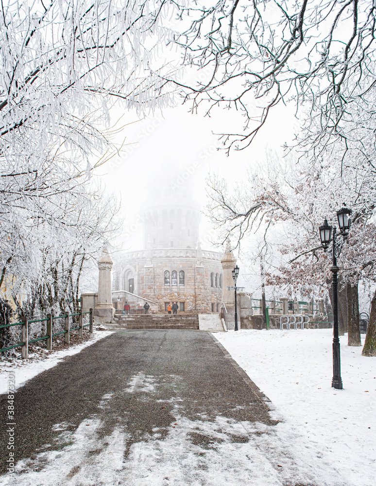 Famous Elisabeth Lookout tower in Budapest, Hungary in winter