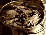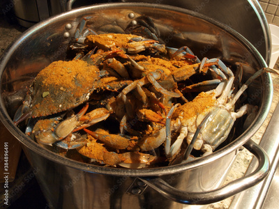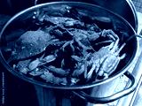 MD blue crabs in pot - live