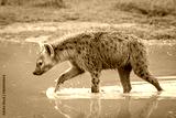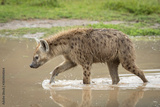 Adult hyena walking through brown water in Ngorongoro Crater in Tanzania