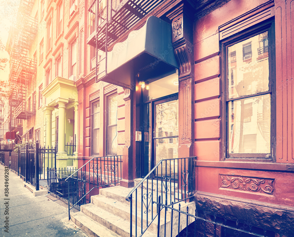 Color toned picture of a street in New York Hells Kitchen neighborhood, USA.