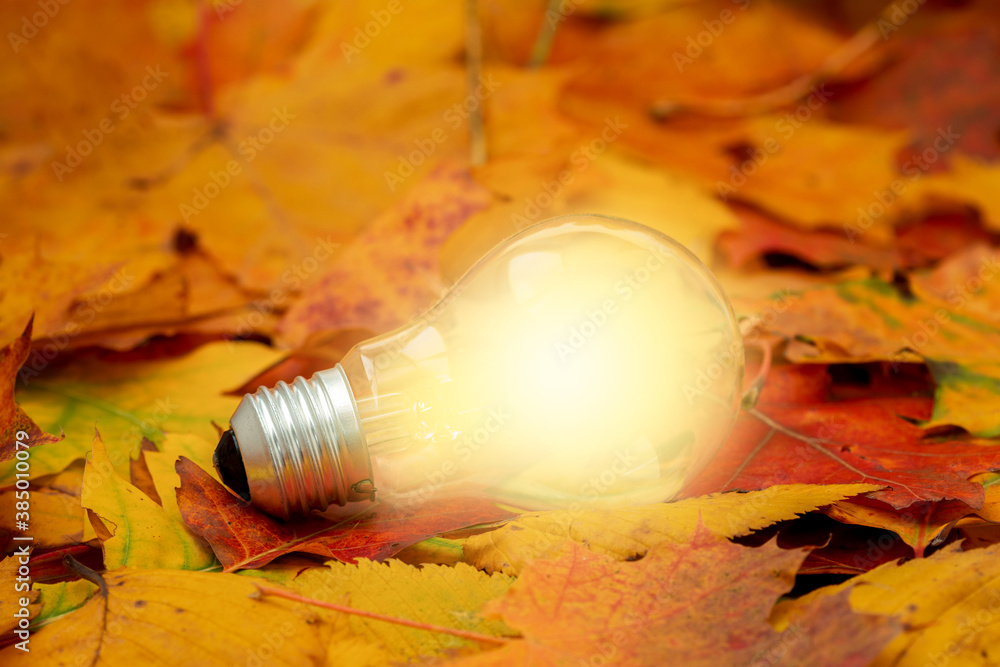 Glowing light Bulb with autumn background
