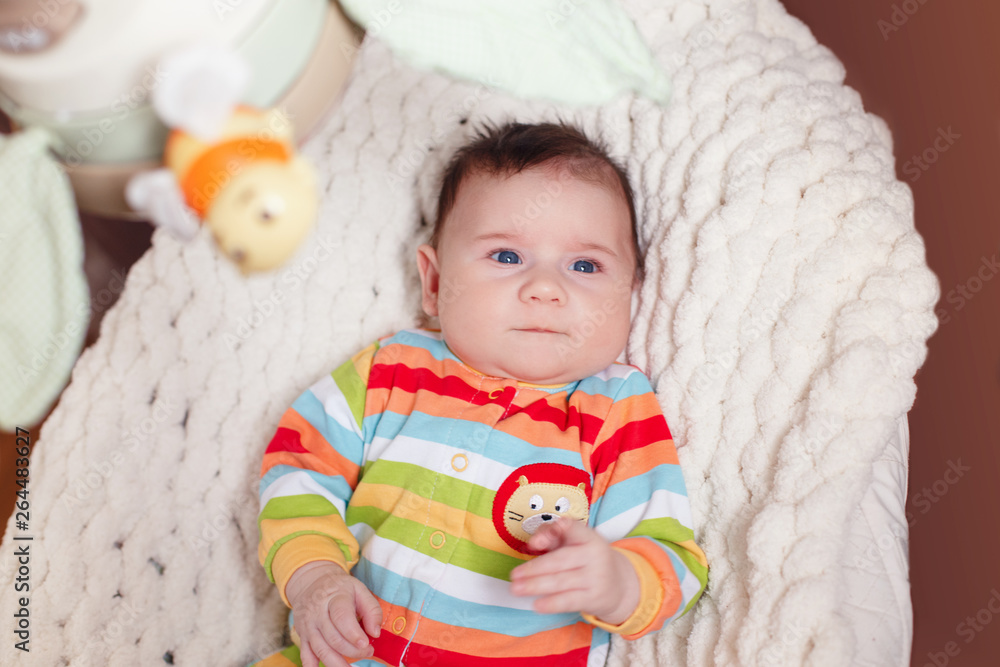 Caucasian girl child sitting in bed and learning online on laptop Internet. Virtual class lesson school on video chat during self-isolation quarantine at home. Distant remote video education class.