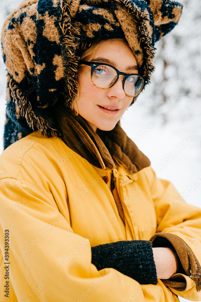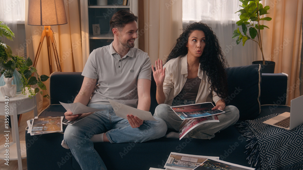 A young woman 25-30 years old is lying on a dark sofa with headphones and listening to music, selectively focusing, close-up.