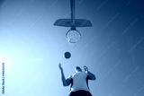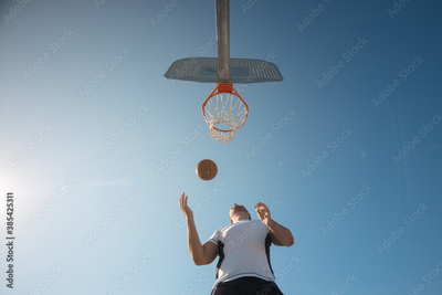 man playing basketball an outdoor court on the street.