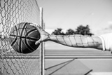 man playing basketball an outdoor court on the street.