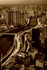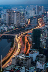 Nightscape of Ho Chi Minh City near Sai Gon River, Vietnam.