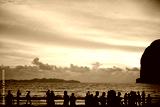 Sunset view with beautiful golden sky,the colorful sky lights in the evening