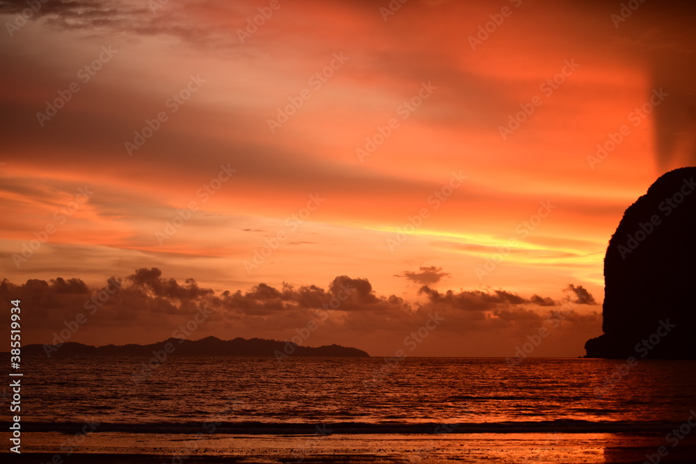 Sunset view with beautiful golden sky,the colorful sky lights in the evening