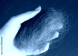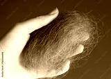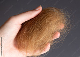 Ball of blonde hairs in the hand of a woman
