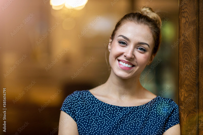 Portrait of confident female entrepreneur standing at creative office