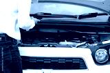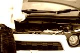 Man checking the car engine and master repairs under the hood of the car, and car insurance concept