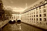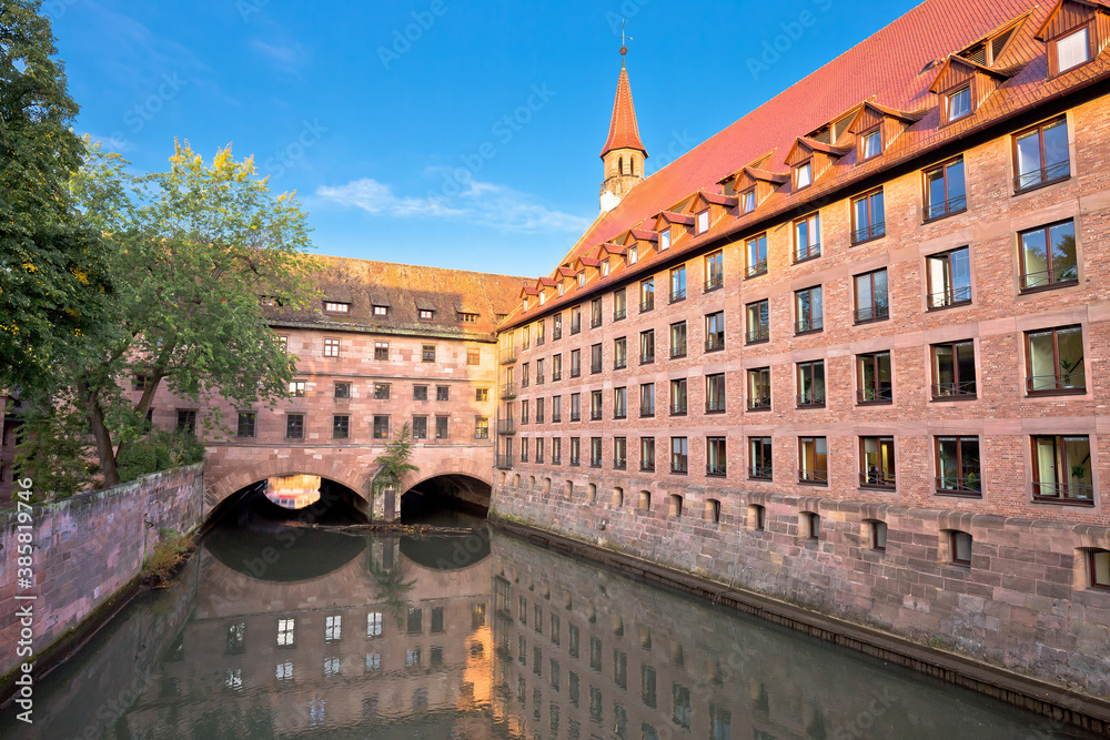 Nurnberg. Pegnitz river weaterfront in Nuremberg historic architecture view