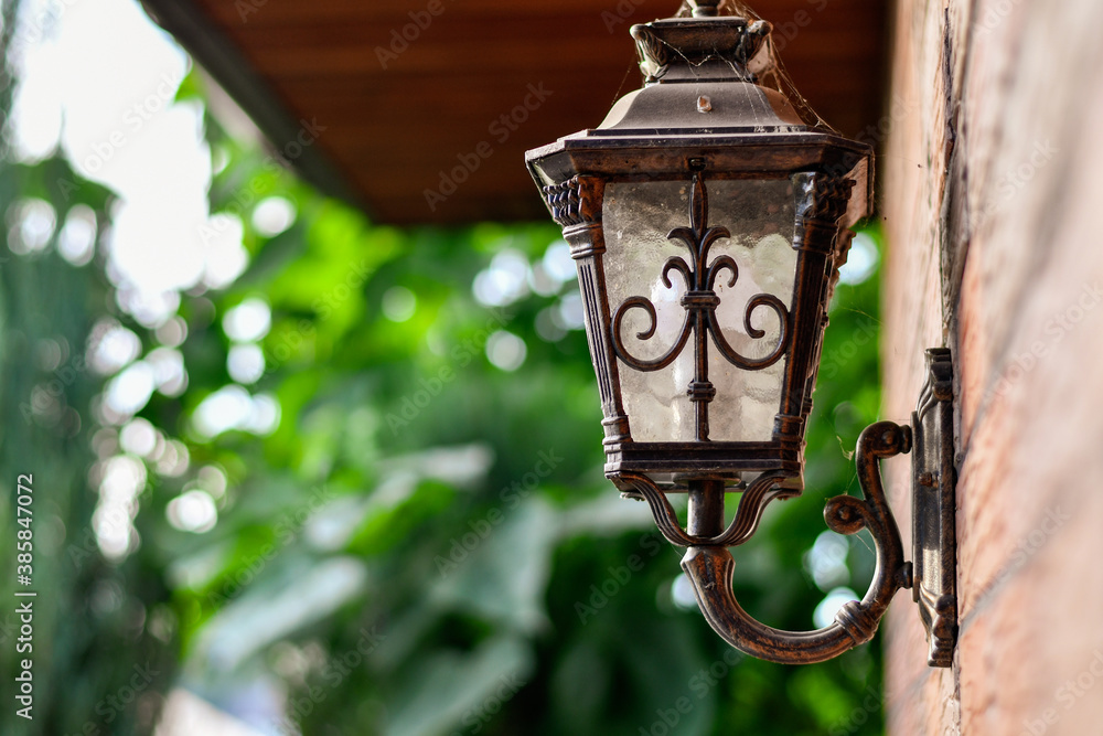 Vintage outdoor street lamp with blurred background. Selective focus.