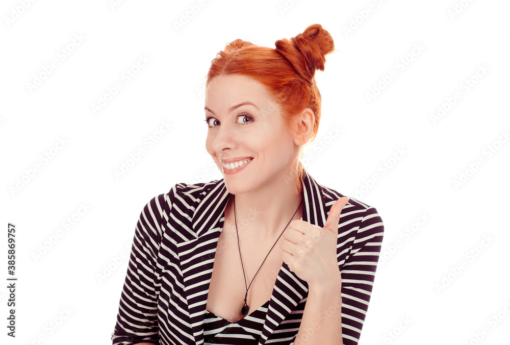 beautiful woman giving thumb up sign gesture