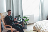 Man talking on the phone during a meeting working from home