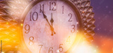 The clock shows the time. Classic watch, close-up. Glow bokeh.