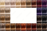 Color palette of hair dyes. A palette of hair colors with a wide selection of samples. There is an empty space in the center. A set of hair dyes.