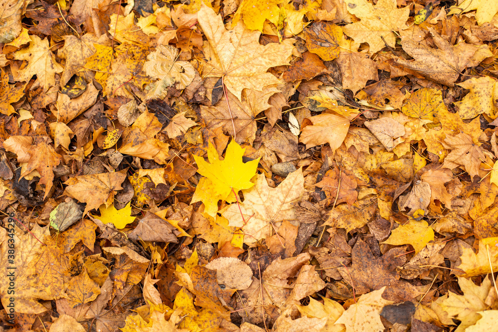 Yellow autumn maple leaves background.