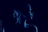 Passion. Portrait of female fashion model in neon light on dark studio background. Beautiful caucasian woman with trendy make-up and well-kept skin. Vivid style, beauty concept. Close up. Copyspace