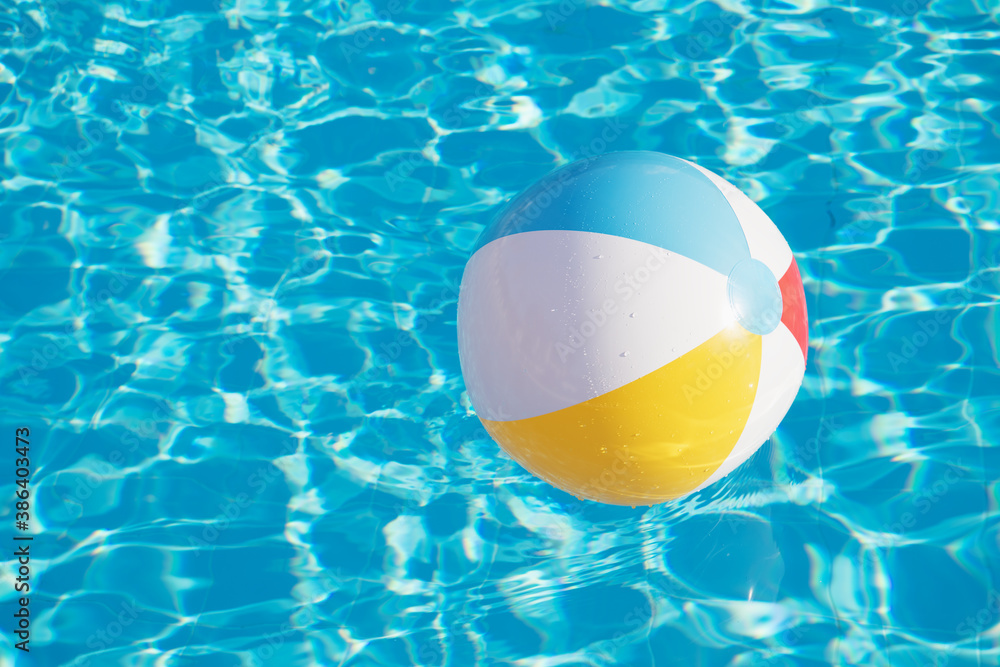 Colorful inflatable ball floating in swimming pool