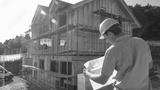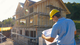 CLOSE UP: Unrecognizable construction site manager looks at the floor plans.