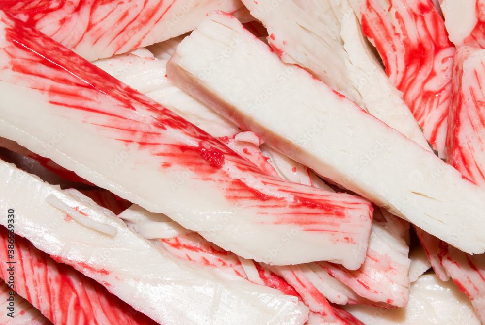 Crab stick.Background of crab meat.Crab sticks made from white fish meat.