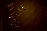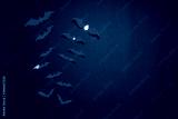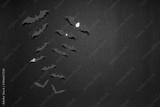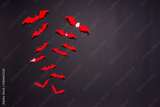 Halloween composition. Flock of red bats on black background. Happy halloween, trick or treat party concept. Flat lay, top view, copy space